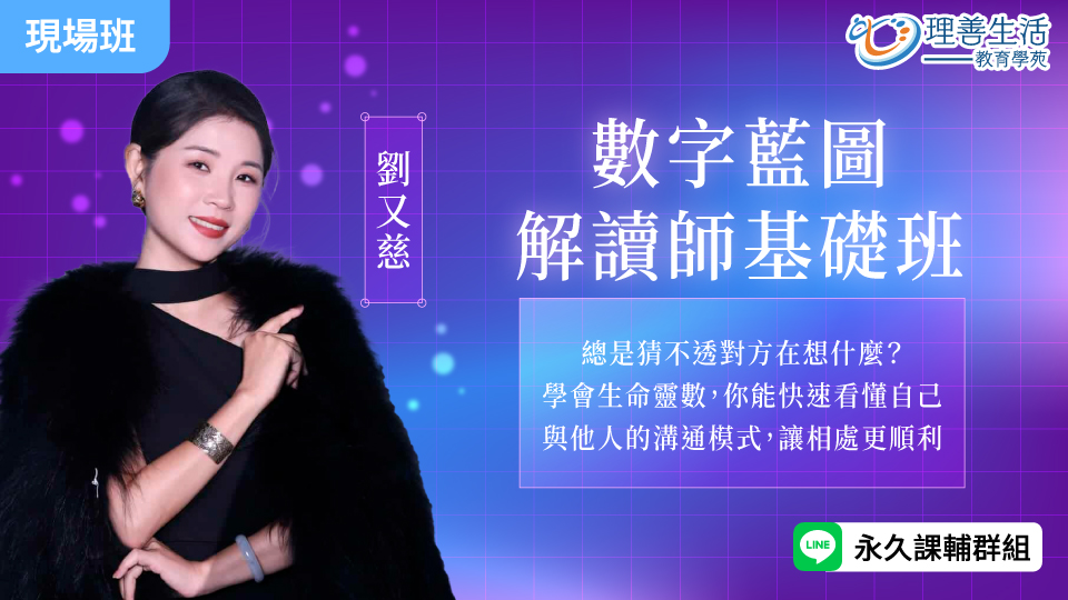 《數字藍圖解讀師基礎班》將帶你從0基礎出發,學會看懂自己的命格密碼,不僅能清楚掌握自己人生方向,也能初步為他人提供解析與建議。