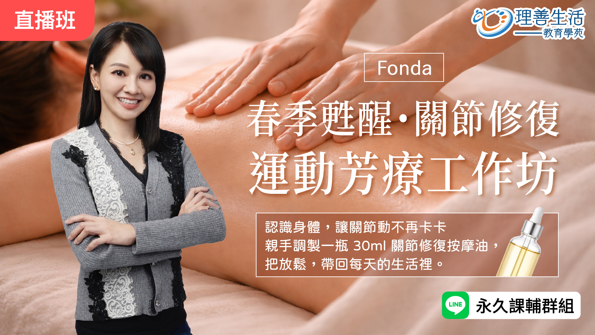 專屬調配:現場製作一份「30ml 關節修復按摩油」(學員可帶回)。